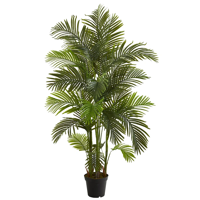Create instant freshness in a bare corner of your home or office with this artificial tree boasting various tiers of realistic areca palm foliage fanning upwards from an accompanying nursery planter. Standing tall and proud at 6 ft. high, this impressive fake tree will provide year-round freshness wherever exhibited.Details:Green72" x 36" x 36" overall size8" x 10" x 10" nursery pot sizeSuitable for either home or office displayEvokes a fresh and relaxing environmentProvides stress-free greeneryComes in an accompanying nursery planterRecommended for indoor use or a covered, protected outdoor location