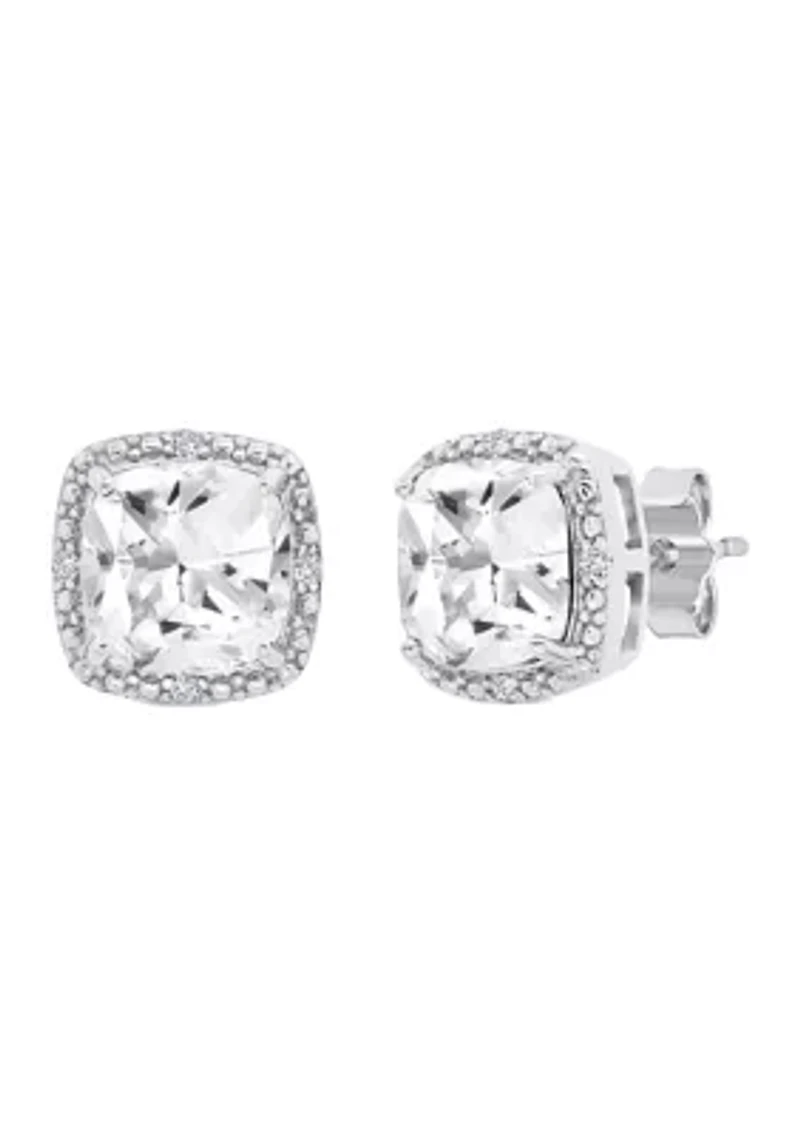 7 Millimeter Cushion-Cut Created White Sapphire and Diamond Accent Halo Stud Earrings in Sterling Silver in Chattanooga, TN