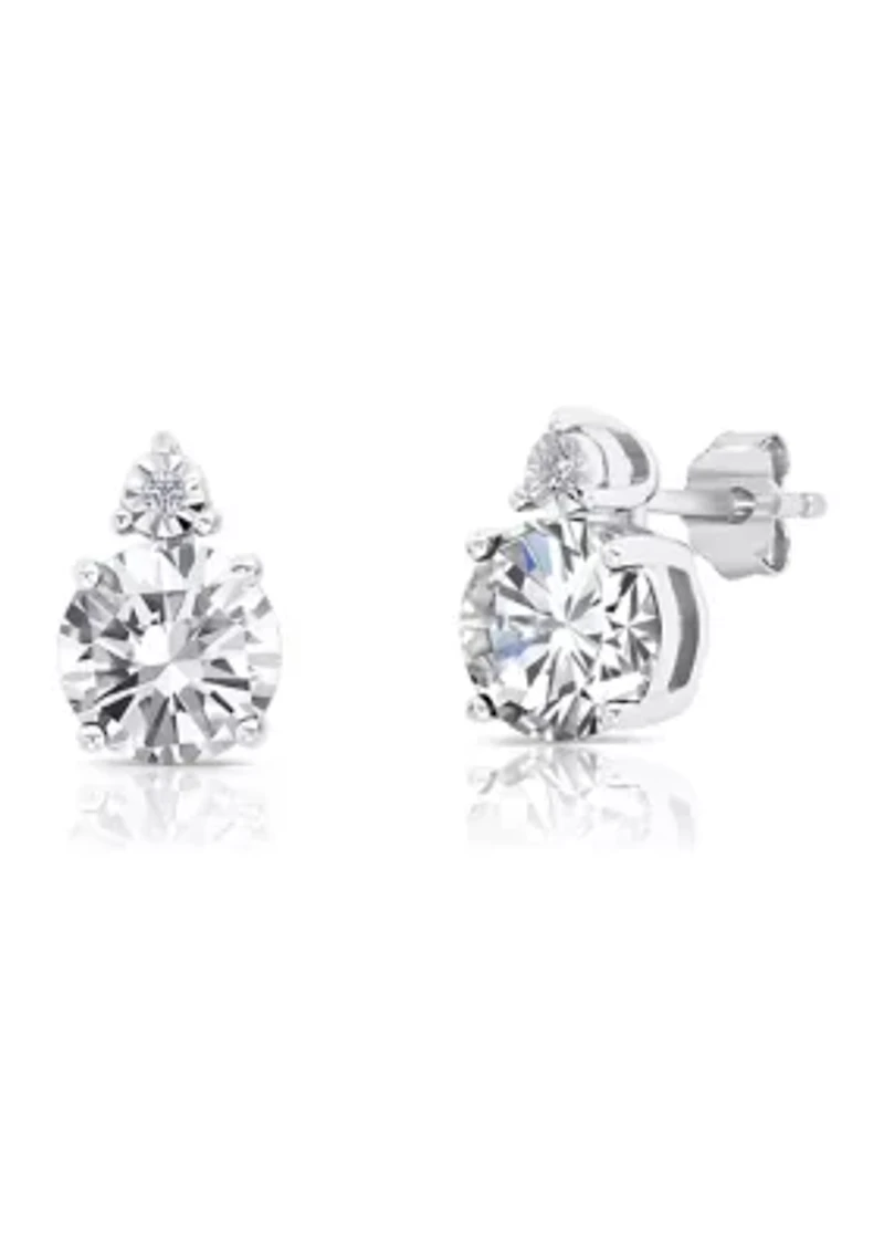 7 Millimeter Round Created White Sapphire and Diamond Accent Stud Earrings in Sterling Silver