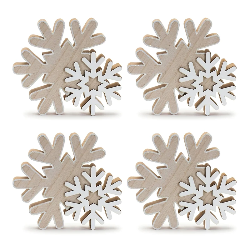 Ring in the holiday season with this adorable set of Wood Snowflakes. Featuring four pieces, this set is a great fit for your whimsical or traditional style of holiday décor.Details:White and natural7" x 1" x 6.5"4 accentsWood and glitterFor indoor use