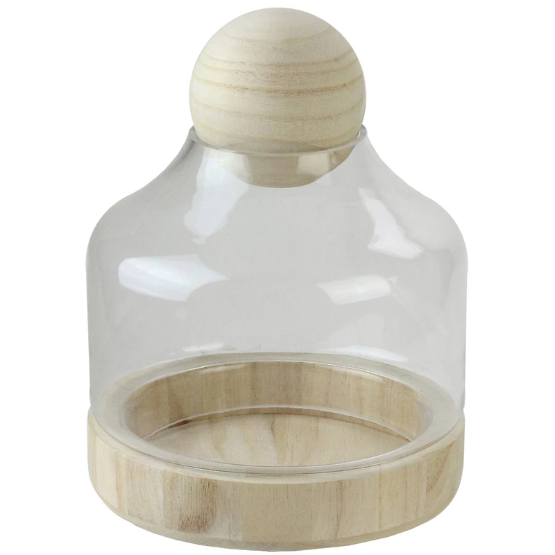 7" Transparent Glass Hurricane with Decorative Wooden Lid
