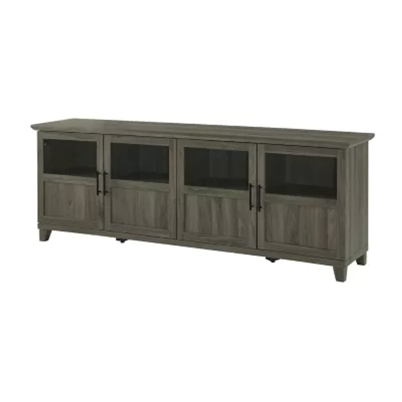 70-Inch TV Console with Glass and Wood 4 Panel Doors