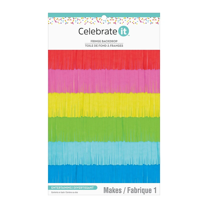 This fringe backdrop is perfect for your upcoming party or event. Use it for festive photos, party décor and more!Details:Bright colors72" x 11.5" (182.8cm x 29.21cm) each6 pieces makes 1 backdropAdhesive on the backPaper