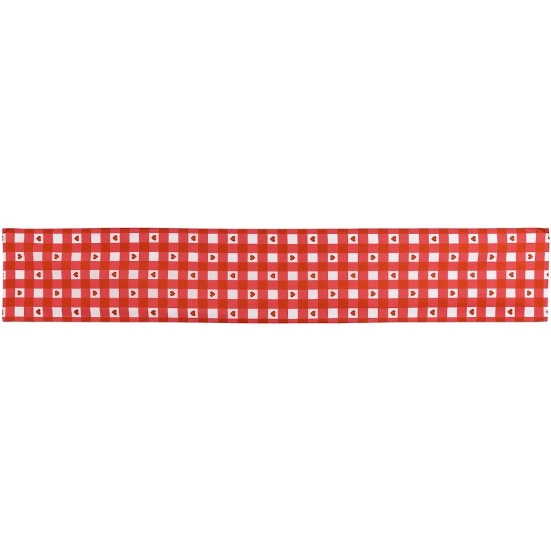 Whether you're hosting a cozy meal for two or a feast with family and friends, our Valentine's Day table runner will be the centerpiece that infuses each moment with a blend of joy and love. As your guests gather around the table, the red and white checkered pattern invites a sense of cherished nostalgia creating an atmosphere that feels both familiar and comforting. The playful red heart design further enhances the sentiment evoking a genuine warmth that resonates with every smile conversation and shared dish. Details: Red and white checkered backdrop with red hearts 72" x 12"Provides protection on table surfaces Polyester and microfiberFor indoor use only