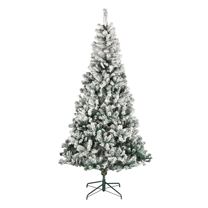 The Acacia tree offers a slimmer profile than trees of similar height making it a great choice for display in corners or in areas where floor space is limited. This tree features flocked branches giving the appearance of freshly fallen snow.Tree Style:FullAcaciaFlockedPVCDimensions:7.5 ft.Features:Sturdy folding metal tree stand is includedThis two-section tree features hinged branches for ease of assembly
