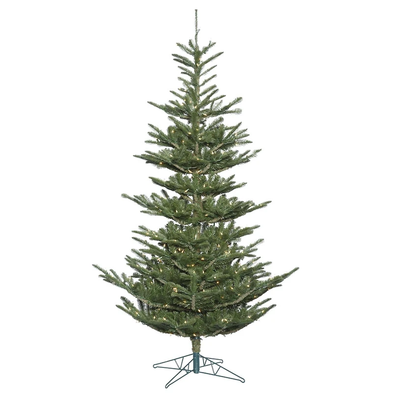 Add a festive flair to your holiday décor with this Alberta spruce artificial Christmas tree. It comes pre-lit and features a blend of rich green molded tips on metal hinged branches.Tree Style:MediumAlberta spruce918 molded tipsPVC, plastic, metalDimensions:7.5 ft. height56" diameterLighting Information:Clear400 Dura-Lit® incandescent lightsUL-listedFeatures:On/off step switchMetal-hinged branchesIncludes metal tree standFor indoor use only
