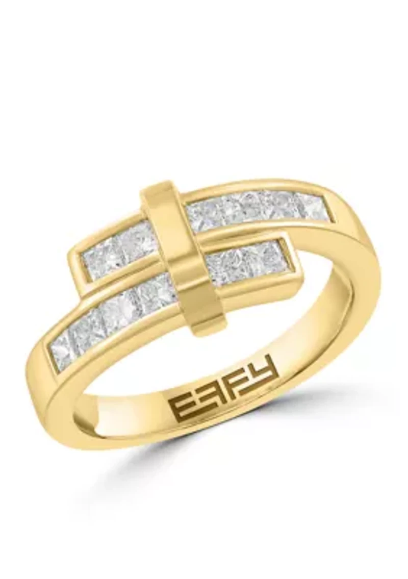 Expertly crafted in radiant 14K yellow gold, this ring from Effy® features a brilliant collection of ethically sourced lab-grown diamonds, offering timeless beauty with a modern touch. 12 Lab-Grown Diamonds Slip-on Color rating: E, F Clarity rating: VS/SI Polished finish Prong setting Lifetime limited liability warranty available Imported Product Specifications 0.86" x 0.36" x 0.16" 7/8 ct. t.w. Lab-Grown Diamond Material & Care 14K Yellow Gold Clean with a soft cloth
