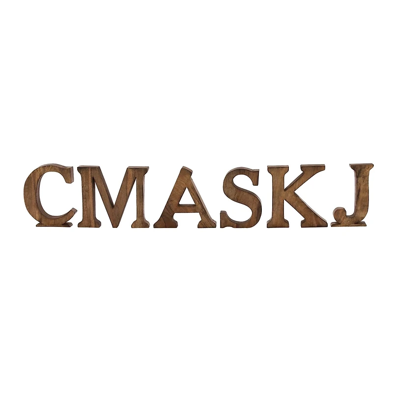 Let these accent pieces provide a sense of style to your home by displaying them on top of a shelf, countertop, mantel, or an accent table. This home décor is perfect for creating a focal point over your accent table, countertop, shelf, or mantel. Easily goes with natural and vanilla-toned console or coffee tables. Designed with black rubber stoppers at the base that prevent scratching furniture and table tops, as well as sliding around. Details: Brown 8" Includes 6 letters (C, M, A, S, K, J) Mango wood For indoor use only
