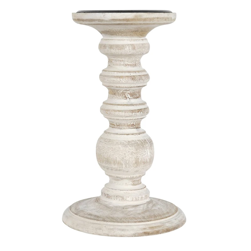 This whitewashed pillar candle holder will look lovely on a mantle. Team it with a vase of dried floral stems to add create a beautiful setup in your living room.Details:White washed8" x 4.5" (20.32cm x 11.43cm)8 candle holdersFits pillar size candleMango wood and iron