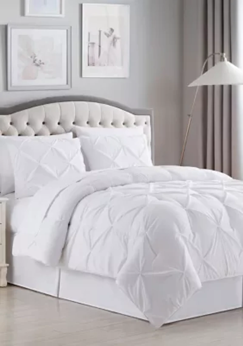 Add some flair to your bed and bedroom with this Sweet Home Collection 8 Piece Solid Color Pintucked Down Alternative Microfiber Bed in a Bag Comforter, Sheet, Bedskirt, Pillowcase, Sham Set. Its pintuck pleats give dimension to the top of bed while also creating a criss-cross look to the fabric. 100% polyester fill Luxury 8 Piece Polyester Pin Tuck Design Comforter, Sheet, Bedskirt, Pillowcase, Sham Set Microfiber shell Queen: Comforter: 90 in x 90 Bed skirt: 60 in x 80 in + 14 in Flat sheet: 90 in x 102 in Fitted sheet: 60 in x 80 in + 14 in depth Shams: 20 in x 36 in + 2 in Pillowcases: 20 in x 30 in King : Comforter: 104 in x 92in Bed skirt: 78 in x 80 in + 14 in quot; drop Flat sheet: 105 in x 102 in Fitted sheet: 78 in x 80 + 14 in depth Shams: 20 in x 36 in Pillowcases: 20 in x 40 in Imported Material & Care Microfiber Machine washable