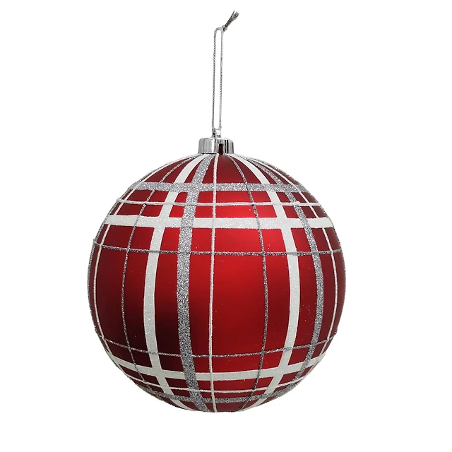 Hello Honey® 6" Red & Silver Grid Mercury Glass Ball Ornament