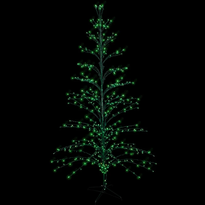 There is no need for stringing lights this Christmas if you bring in this pre-lit artificial Christmas tree for your festive decorations! It also eases the cleaning process after disassemble. As per the conventional way wrap the presents for your loved ones and store them beneath this tree décor.Tree Style:Medium cascade treeGreenMetal and wireDimensions:9 ft. tall46" baseLighting Information:Green500 lightsLighting features (EX.color changing, UL listed, extra bulbs/fuses)53" green lead cordFeatures:Green metal frame and standRust resistant coated wire4-piece easy assembly (including stand)Comes with replacement bulbs spare fuse and ground stakesRecommended for indoor use only