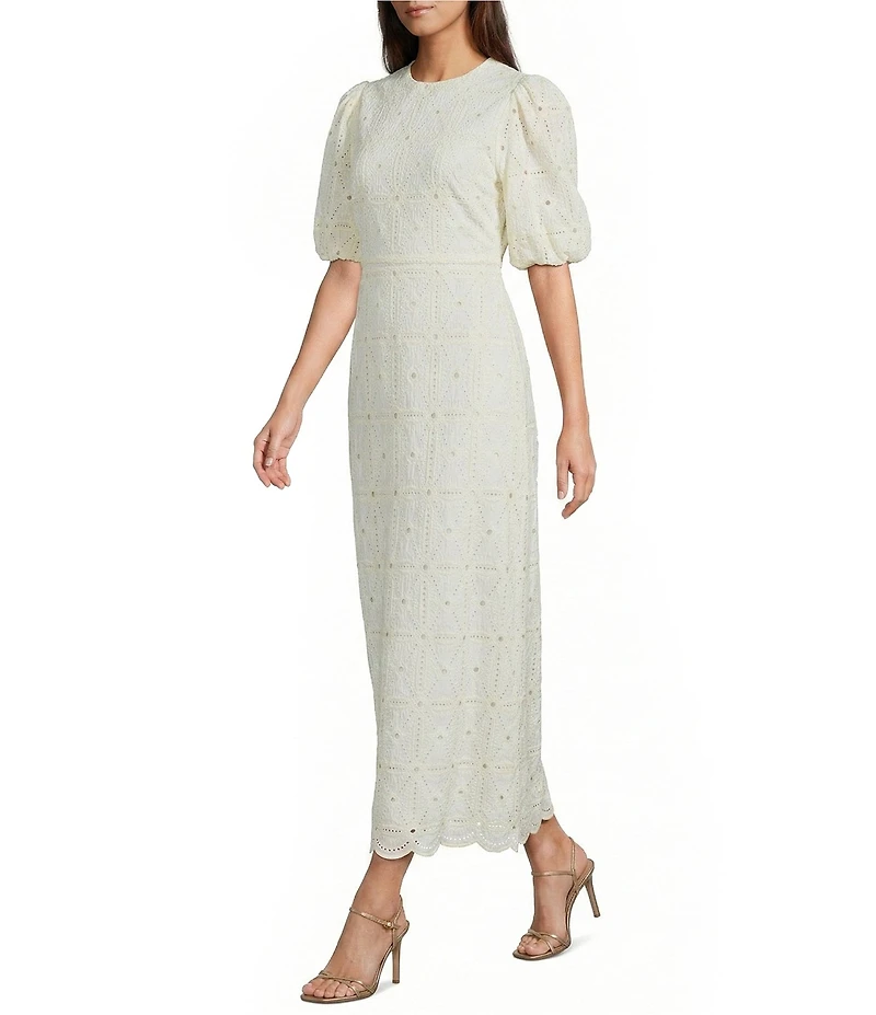 A Loves A Embroidered Round Neck Long Bubble Sleeve A-Line Maxi Dress