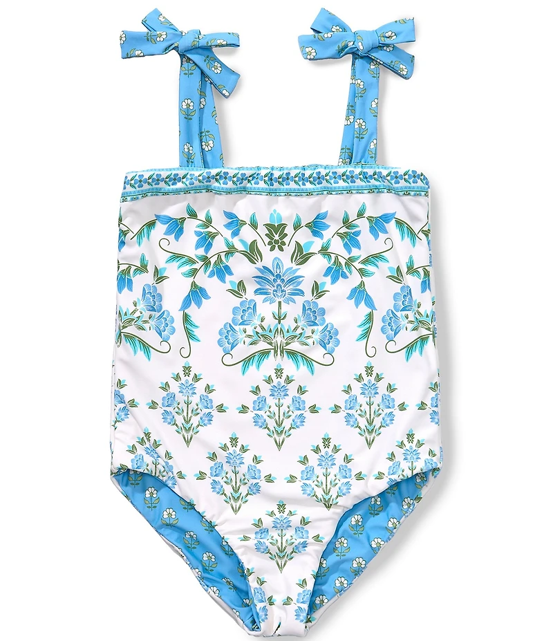 From A Loves A, this 1-piece swimsuit features: Reversible Floral print Square neckline Sleeveless Pull-on styling Removable cups Nylon/spandex Machine wash/tumble dry Imported.