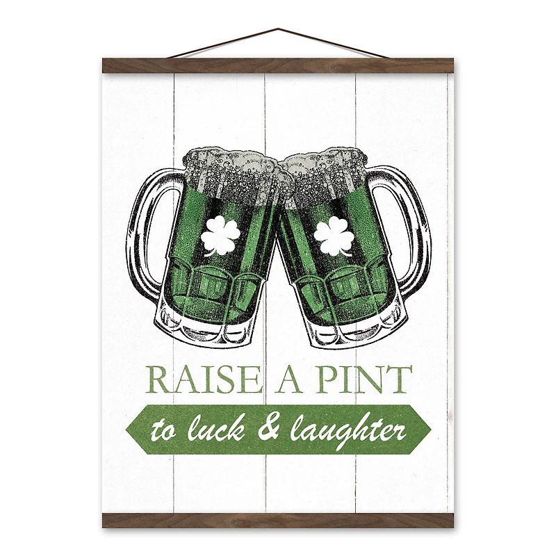 A Pint to Luck & Laughter Teak Hanging Canvas