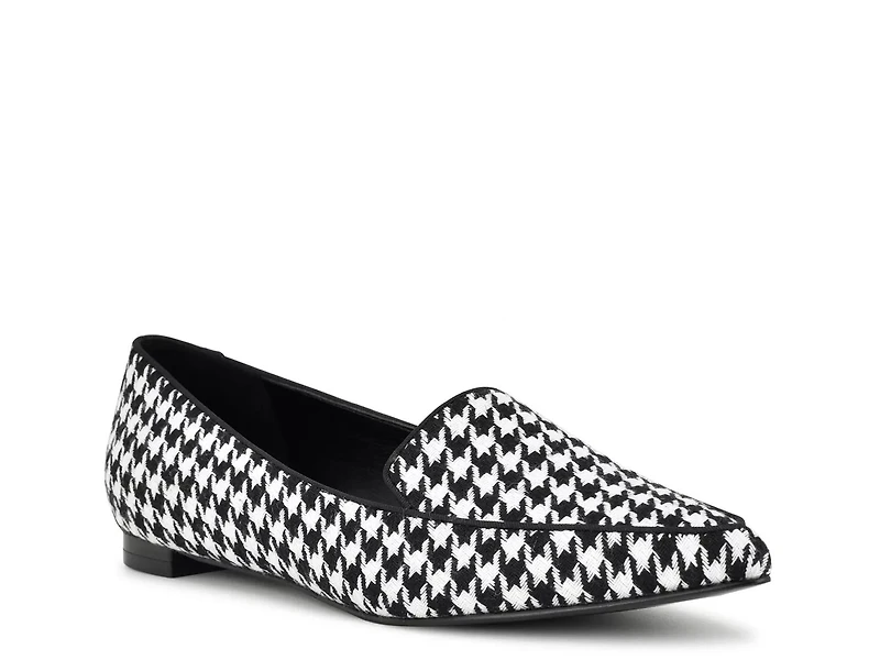 Touch up your look with the Abay loafer from Nine West. This sophisticated style features a chic pointed moc toe and a cutaway lip. Designed with a plaid houndstooth design for a preppy flair.