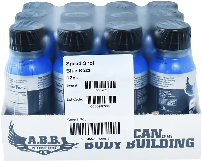 Enjoy an intense boost of energy with the ABB Speed Shot Energy Drink, which can be used as a preworkout supplement or for daily energy and alertness. Featuring a potent, highly concentrated formula to deliver intense energy when you need it, this energy drink contains 0 calories and 0 grams of sugar.