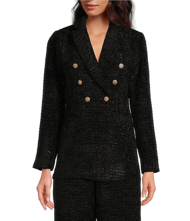Abbey Glass Calvin Boucle Tweed Notch Lapel Long Sleeve Button Front Double Breasted Blazer