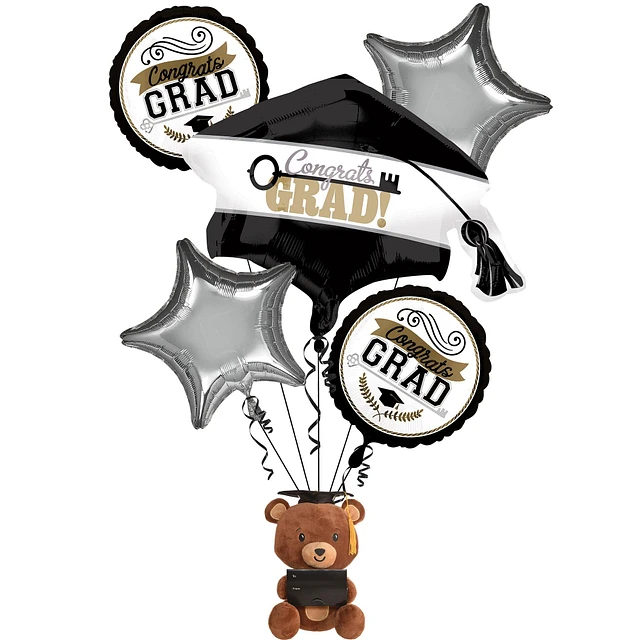Achievement is Key Graduation Foil Balloon Bouquet, 5pc, with Plush Bear Balloon Weight & Card Holder