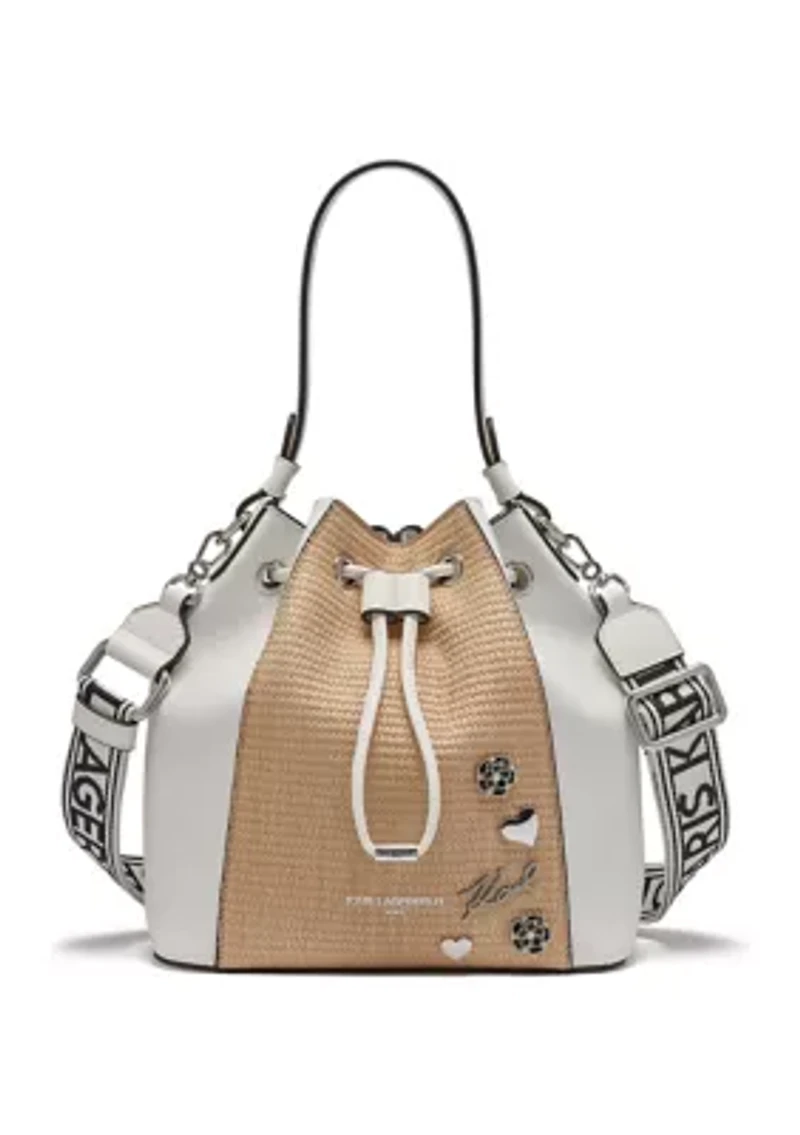 Stunning silver hardware adds a touch of modern allure to the iconic Adele Bucket Bag from KARL LAGERFELD PARIS. Featured in a spacious silhouette, this stylish bag is finished with a removable strap and a drawstring closure for a fashionably functional look. Drawstring closure Removable strap with 27'' drop Interior: 3 card slots Imported Product Specifications 9'' L x 9'' W x 6'' D Material & Care 100% Polyurethane Spot clean only