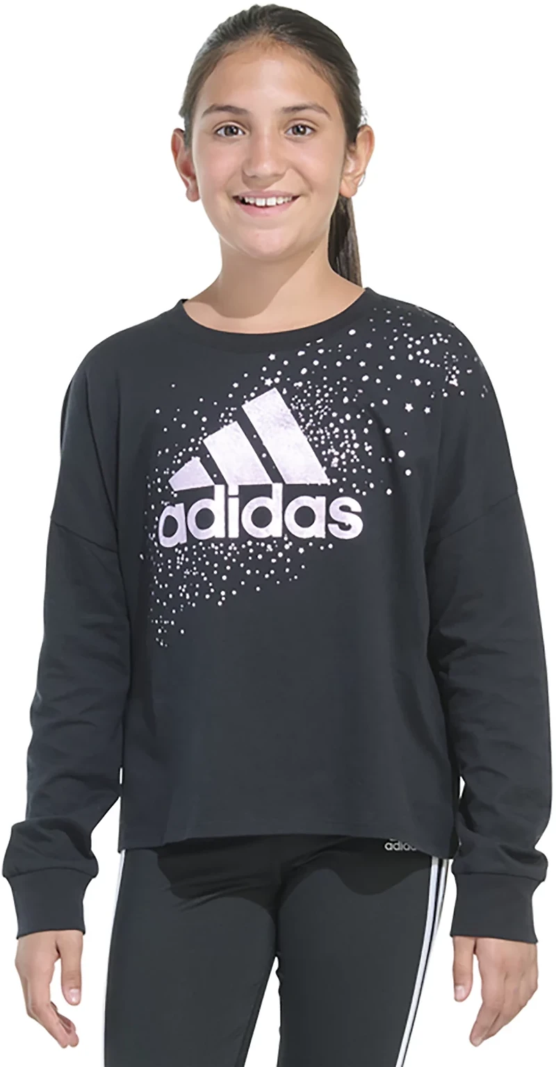 Brighten her day with the adidas Girls' Long Sleeve Waist Crew Neck Tee, crafted for cozy comfort with a classic crew neck and long sleeves. Stylish drop shoulders and a ribbed crewneck make this an everyday favorite!