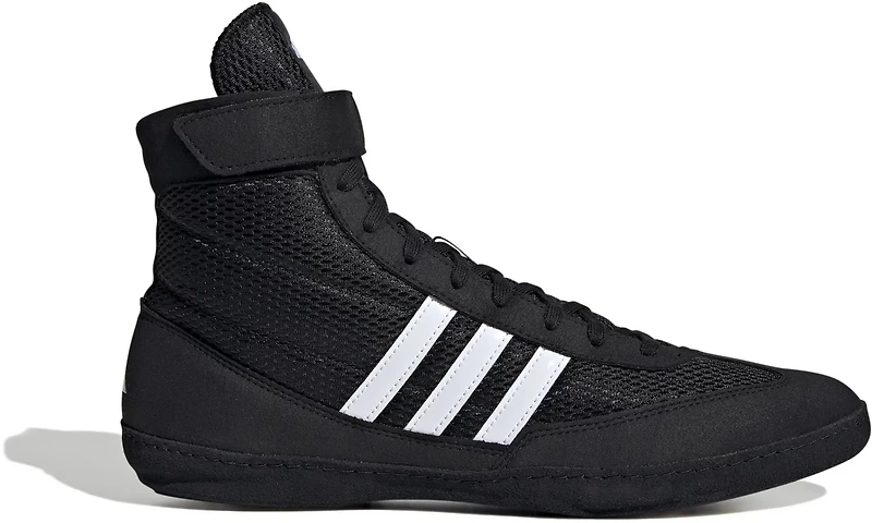 Take on your rival in the adidas™ Men's Combat Speed 4 Wrestling Shoes, which offer a comfortable, sock-like fit. The lightweight, breathable mesh uppers feature suede and synthetic leather areas for durability, while the EVA midsoles aid in your attack stance. Split-suede outsole overlays provide excellent spin on the mat. Supportive TPU stripes. Lace and ankle strap closures.