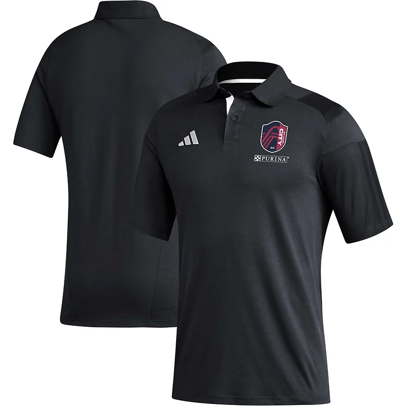 The adidas Black St Louis City SC 2023 On-Field Training Polo is a must-have for any St Louis City SC enthusiast Breathable recycled polyester material ensures comfort during intense training sessions or casual outings Screen-printed graphics proudly display the St Louis City SC logo fostering a sense of community and team spirit Whether you're on the field or cheering from the stands this polo seamlessly blends style and functionality making it the perfect choice for any St Louis City SC fan