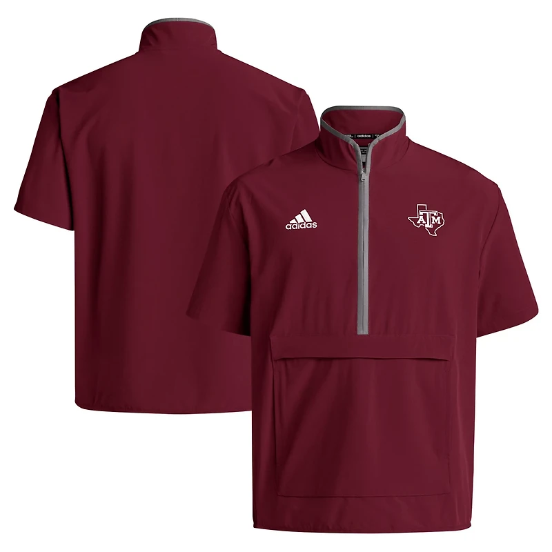 adidas Texas AM Aggies 2024 Coaches Sideline Half-Zip Short Sleeve Jacket