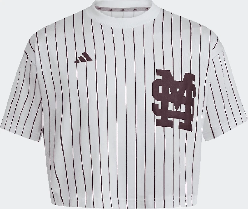 Get ready for game day with the adidas Women's Mississippi State University Cropped Pinstripe Baseball Jersey. The cotton material provides a comfortable feel, while the team graphics show off your Bulldogs pride.