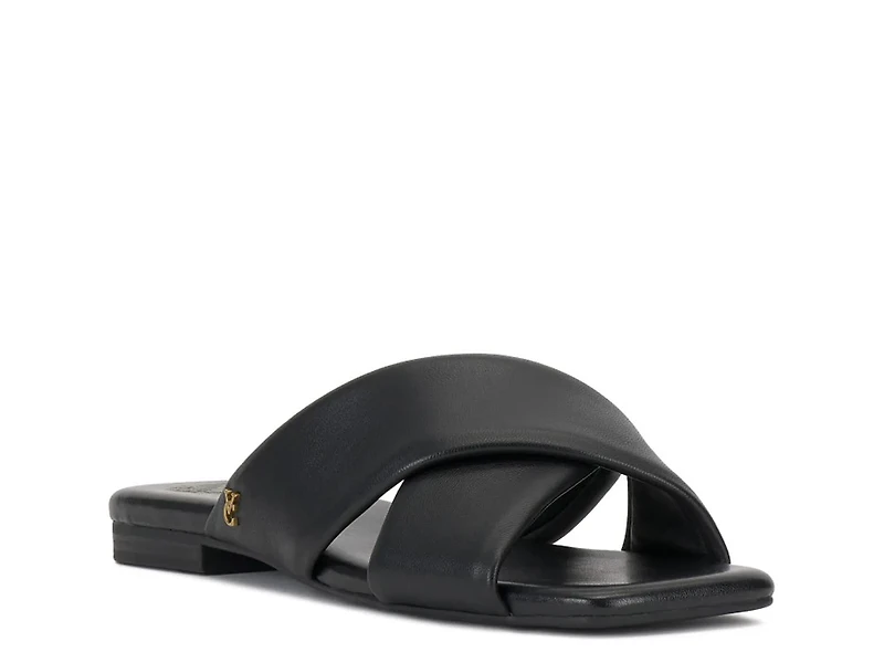 Sharpen your look with the Adisey sandal from Vince Camuto. This slip-on sandal features a sleek square open toe silhouette that brings a refined edge to your ensemble. Designed for both comfort and style, it offers a lightly padded footbed and a smooth synthetic lining, making it an ideal choice for sophisticated occasions where polished ease is key.