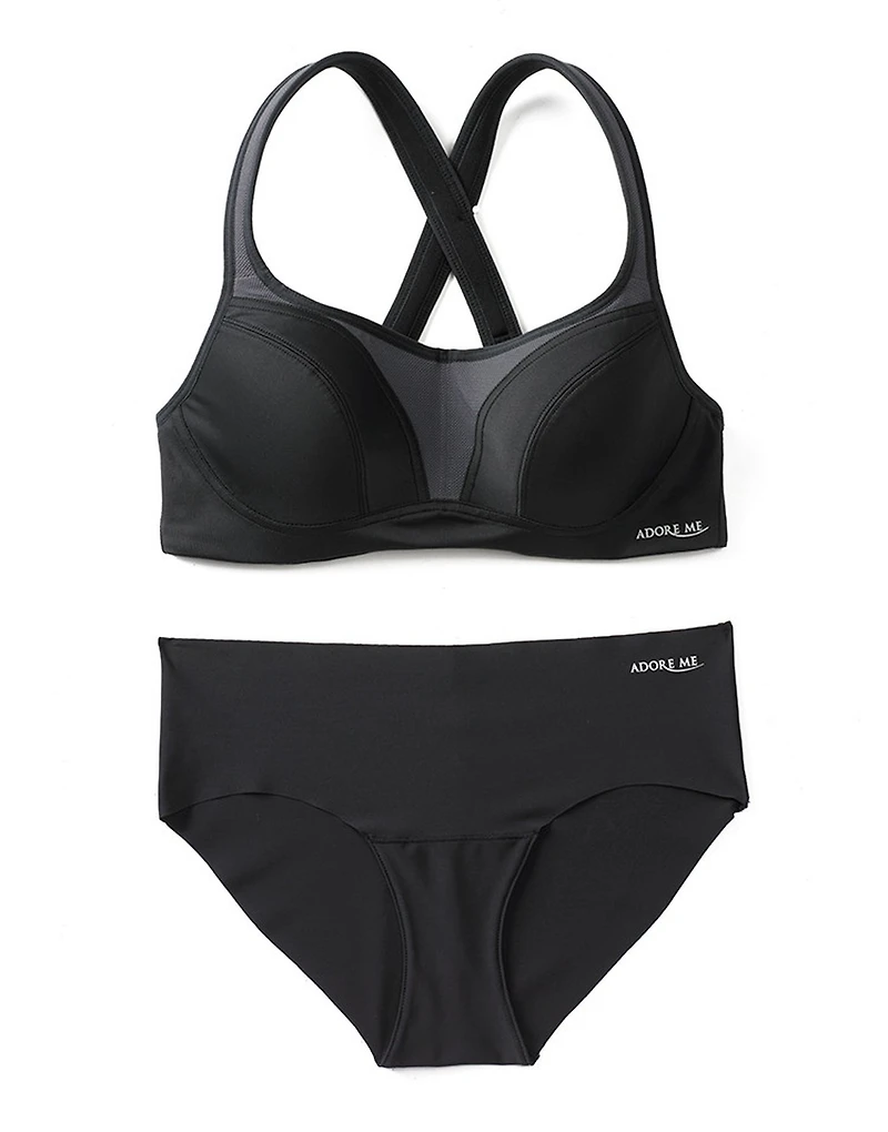 The Adona high-impact sports bra is perfect for your most intense workouts. With contour cups, underwire support, and padded cross-back straps, this sports bra will give you the coverage and comfort you need. Choose between the matching thong or hipster panty to complete the set. (Available in sizes 30A-38DD.)