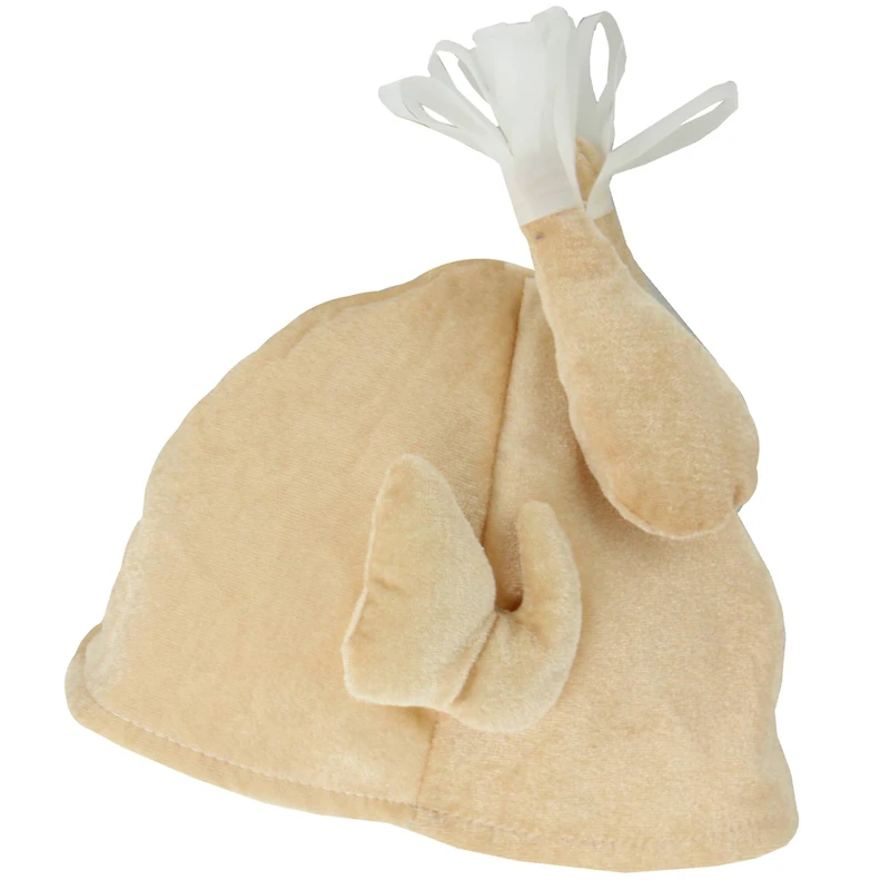 Bring the fun of dressing up for Thanksgiving with this fun roasted turkey hat Dimensions: 10" high x 11" diameter Material(s): polyester