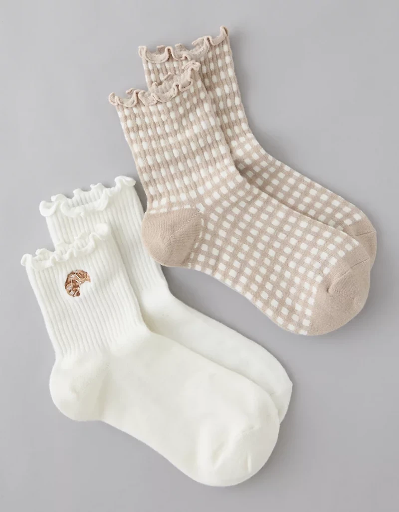 AE Breakfast Graphic Cropped Crew Socks 2-Pack