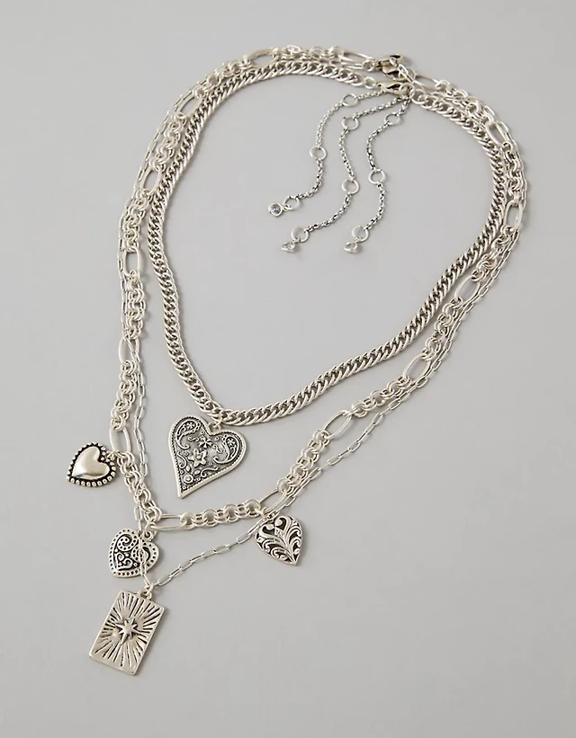 Silver Layered Heart Charm Necklace