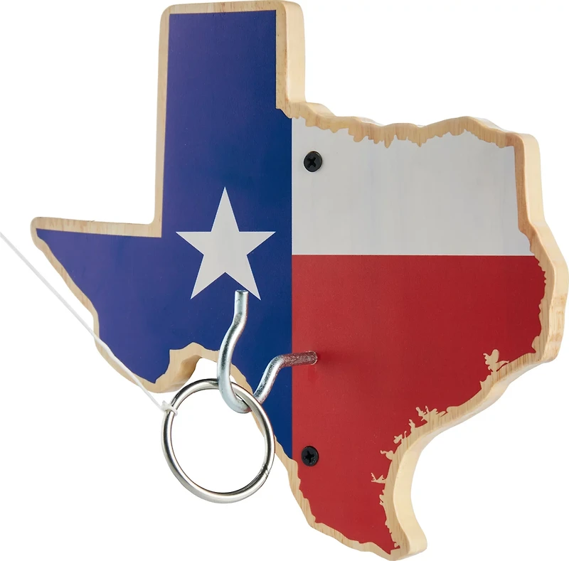 Add fun to your home when you bring out the AGame Texas Hook and Ring Game. This fun game is designed for indoor and outdoor use, and comes with a sleek wood target, steel hooks and steel rings. The wood screws encourage easy setup and the lightweight design allows for convenient transport, while the themed graphic designs proudly boast your Texas state pride.