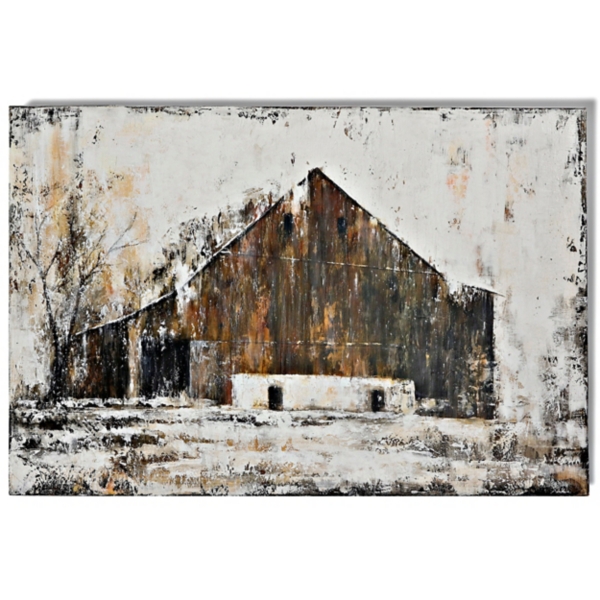 Add some farmhouse charm to your home with our beautiful Aged Barnhouse Canvas Art Print. You’ll love the rustic look of this stunning canvas art print. Art measures 50L x 2W x 40H in. Distinctively printed on stretched canvas Wrapped edges complete the look Features vintage barn subject Accented with hand-painted details Hues of white, brown, tan, and black Weight: 9.5 lbs. Comes ready for wall mount; no additional hanging hardware required Care: Dust with a soft, dry cloth. This item is available at Kirklands.com only, not available in stores. Please note: this item cannot be shipped to APO/FPO addresses.