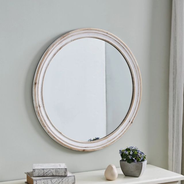 Glitzhome® 31.75" Washed White Wood Frame Wavy Wall Mirror