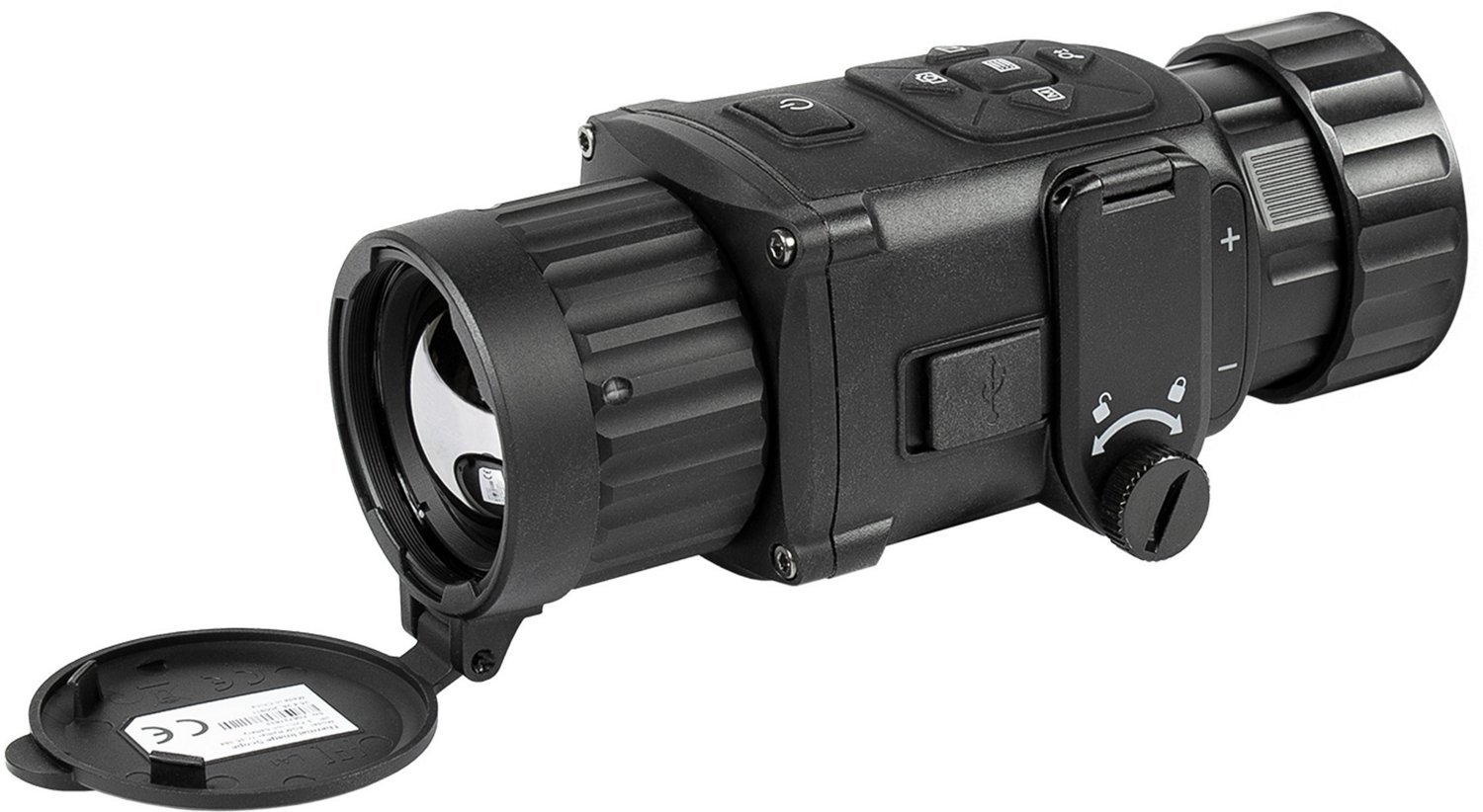 Get more out of your hunt with the AGM Global Vision TC35-384 Rattler Monocular Riflescope. The OLED display allows for clear viewing, while the thermal imaging allows for use in fog, rain, complete darkness and more. The waterproof and shockproof construction ensures durability, and the onboard Wi-FI data transmission allows for live video streaming and video/image recording. The compact thermal imaging clip-on system that allows quick transformation of the day optics into thermal imaging device without any special tools or equipment.