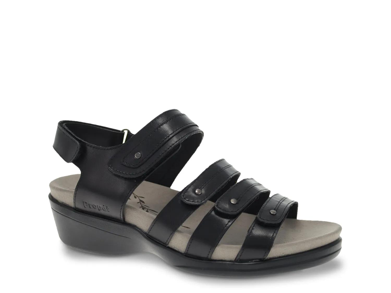 Enjoy a strappy style with a secure design in the Ainsley sandals from Propet. This pair features a classic silhouette, crafted with hook & loop closures for a customized fit, intricate stitching, and studded details.