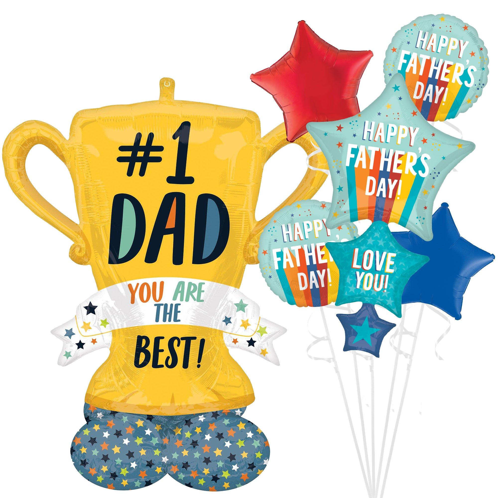 AirLoonz Number One Dad Trophy & Playful Stripes Balloon Bouquet with Balloon Weight, 6pc