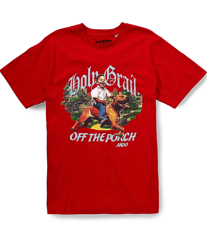 From AKOO, this t-shirt features: Crew neck Short sleeves Graphic artwork on the front Straight hem Pullover construction Cotton jersey Machine wash/tumble dry Imported.