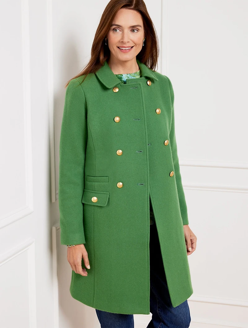Minimalism at its finest. Our cozy wool blend coat is expertly tailored in double breasted silhouette. Features convenient button flap pockets. A coat that never goes out of style.