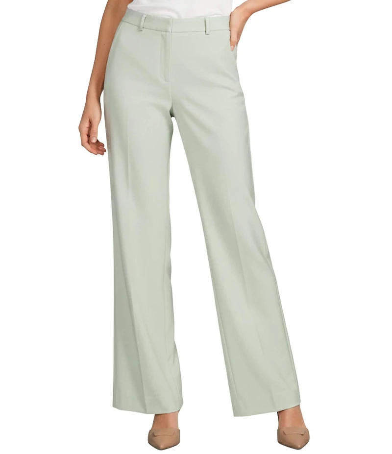 From Alex Marie, these pants feature: Straight leg silhouette Flat front Mid rise waistband Front hook and zip closure Approx. 31.5" inseam Polyester/rayon/elastane Machine wash/line dry Imported.