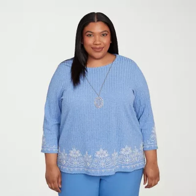 Alfred Dunner Lake Champlain Womens Plus Crew Neck 3/4 Sleeve T-Shirt