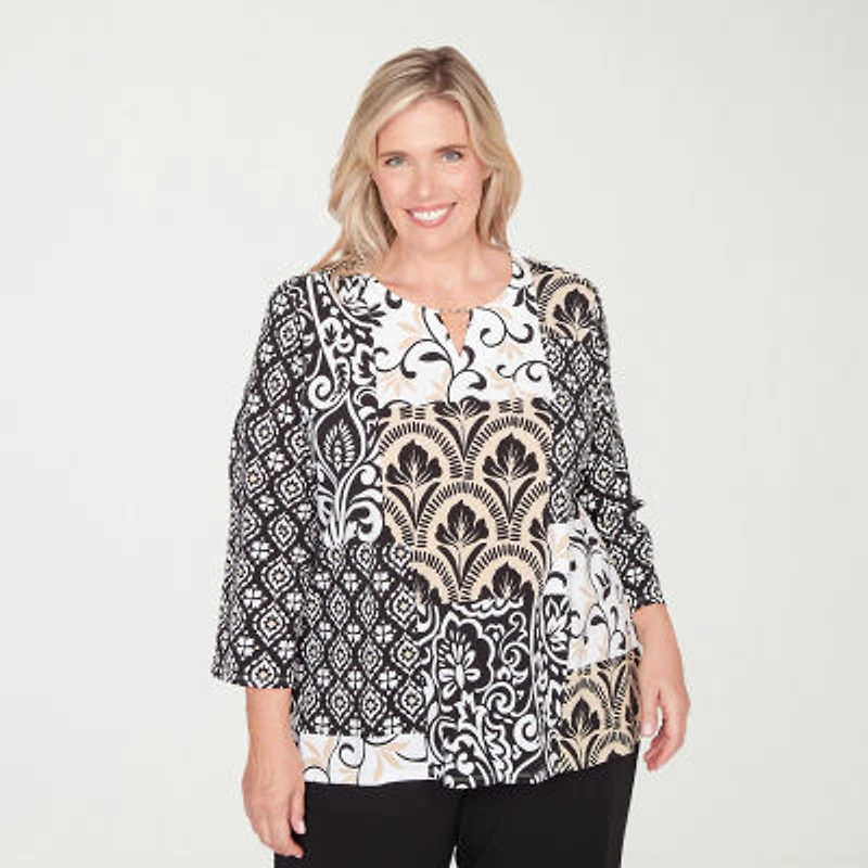 Alfred Dunner Classics Womens Plus Crew Neck 3/4 Sleeve T-Shirt