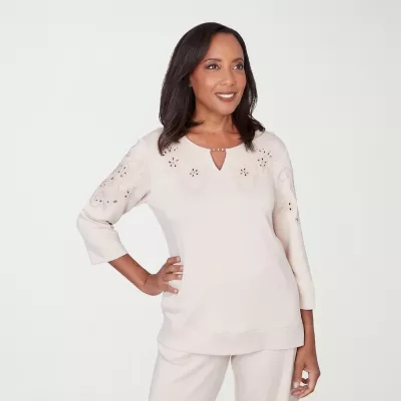 Alfred Dunner Seville Womens Split Crew Neck 3/4 Sleeve T-Shirt