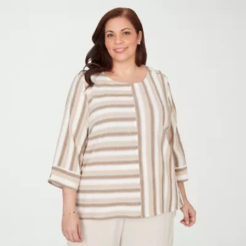 Alfred Dunner Womens Plus U Neck 3/4 Sleeve Blouse