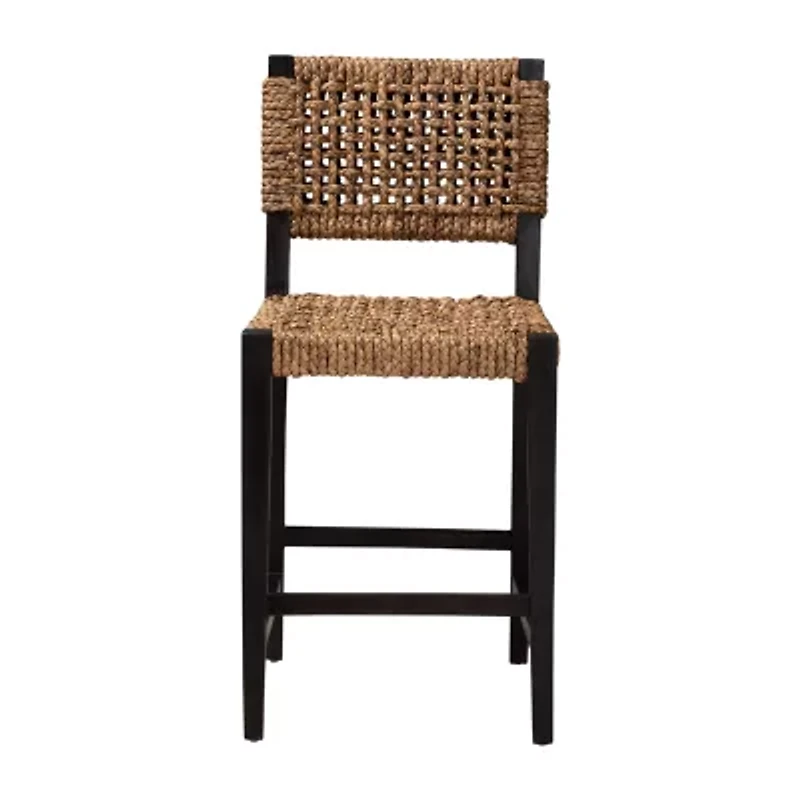 Enjoy a more tropical ambiance in your space with the enchanting alise counter stool. made in indonesia, this boho piece is constructed from solid mahogany wood. the backrest and seat are embellished with woven seagrass interlaced to form a smooth embrace. the alise will arrive fully assembled and features ergonomic footrests on each side for enhanced relaxation. a candid presentation of exotic craftsmanship, the alise counter stool transforms the mood of any occasion.