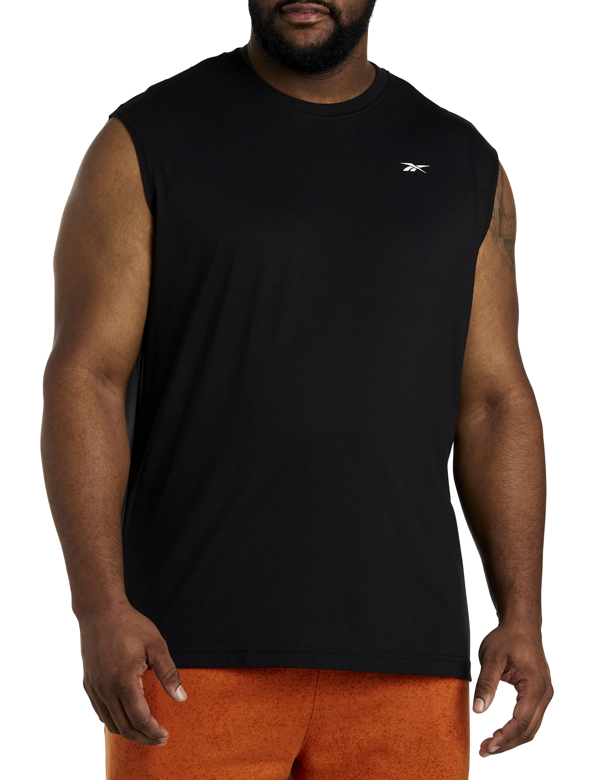 Sport brings a sense of togetherness and belonging and this Performance T-shirt is a great example of that. Working out, in the game, or as a first layer for tees and sweatshirts, you'll love this sleeveless muscle tee from Reebok. It's comfortable, versatile and has a screenprinted graphic on the back which sports a positive, inclusive message that "all are welcome here" on the back side.