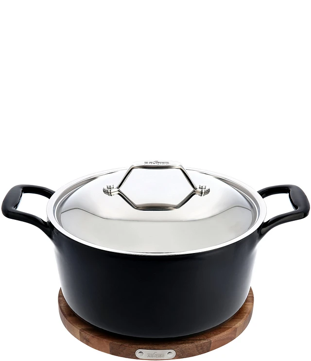 All-Clad Enameled Cast Iron 6-Quart Dutch Oven with Lid and Acacia Wood Trivet